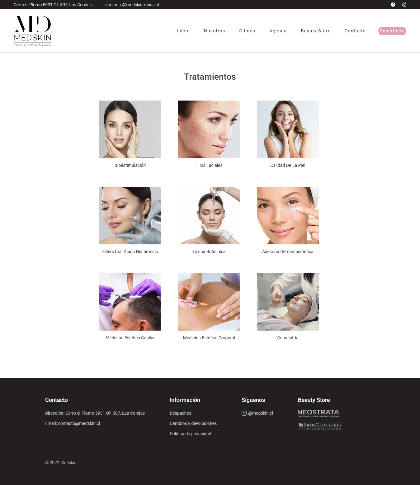 Nace en el año 2021 con el objetivo de entregar Medicina Estética con los más altos estándares de calidad. A cada paciente se le ofrecen procedimientos faciales ecoguiados y seguros, con un base científica sólida. Los insumos son de primera calidad y nuestra prioridad es la atención personalizada. Todos los procedimientos tienen como base principios anatómicos y fisiológicos, teniendo la naturalidad como pilar fundamental. Todo ésto hace a Medskin, un concepto único en el mercado de la Medicina Estética actual.
